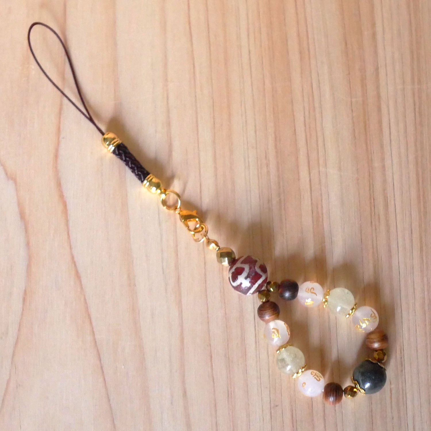 天照石(てんしょうせき・あまてらすせき/鉱物名:見立礫岩(みたてれきがん))・伊勢神宮御山杉大貴珠(伊勢神宮(内宮)の大杉)・リビアングラス・メノウ(宝瓶天珠)・ホワイトカルセドニー(六字真言金文字入り)・ヘマタイト(ゴールドカラー32面カット)