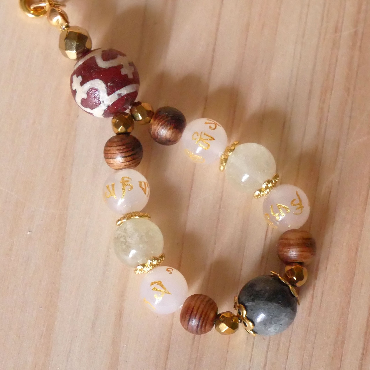 伊勢神宮御山杉:6mm 4個 天照石:10mm 1個 リビアングラス:9mm 2個 メノウ:12mm 1個 ホワイトカルセドニー:8mm 4個 ヘマタイト:6mm 1個・4mm 4個