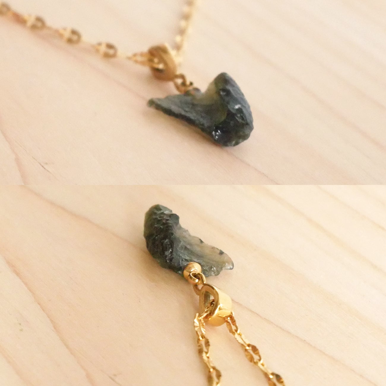 【モルダバイト原石ネックレス】テクタイト テンレスチェーン ゴールド開運 ヒーリング 邪気除け