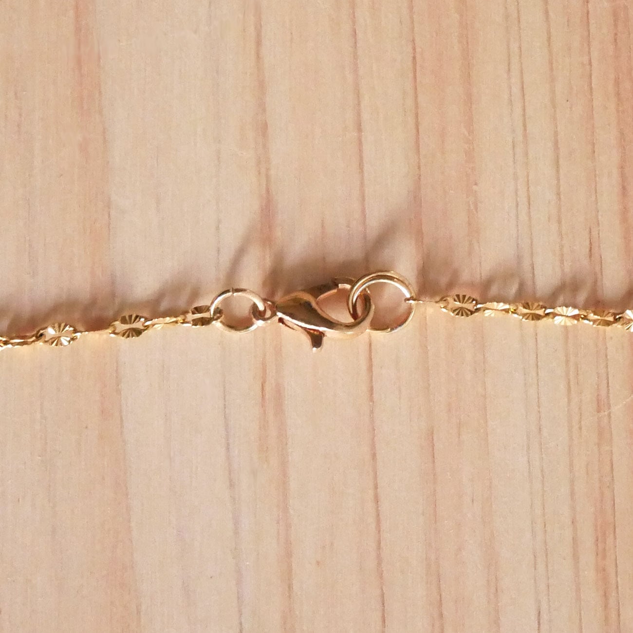 チェーン・金具はステンレス(ゴールドメッキ)ペタルチェーンに放射状(バースト)模様入りです。
