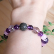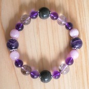 高千穂山系のみでしか採取できない天照石、希少でパワフルなアメジスト奇石やクンツァイトを組み合わせたパワーストーンブレスレットです。