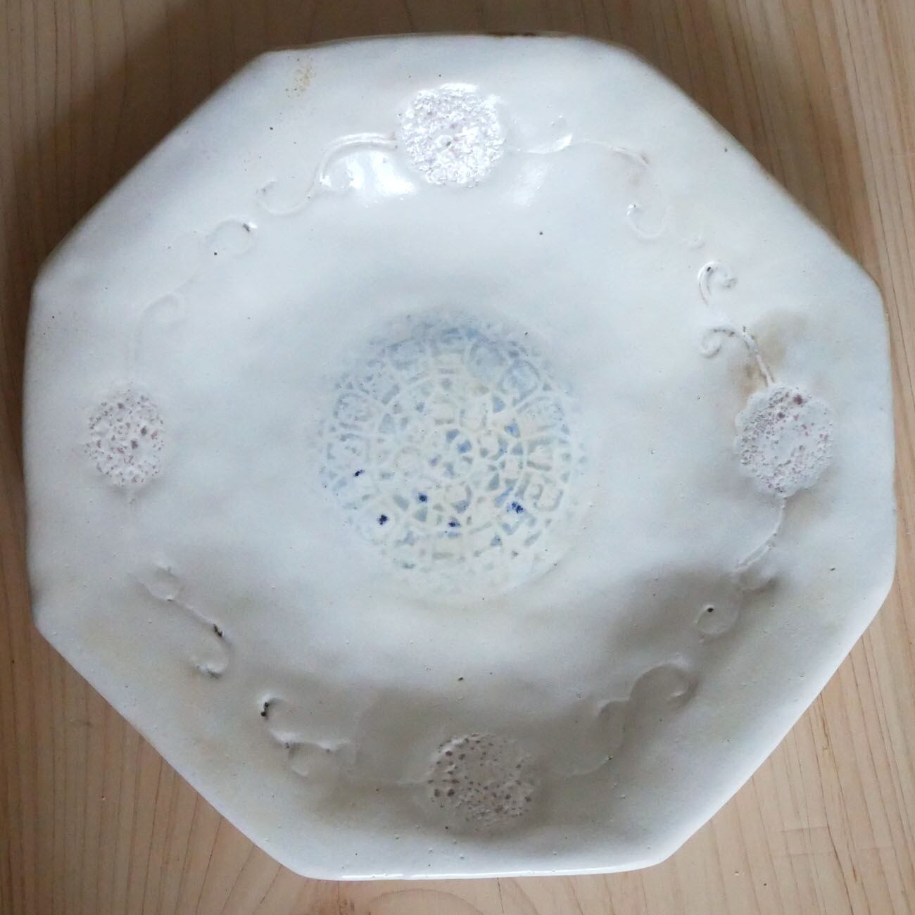 【サンプル特価!高波動!遠野の霊石入り陶器】八角皿 龍体文字フトマニ図マンダラ柄入 マイナスイオン&遠赤外線発生!高浄化 開運