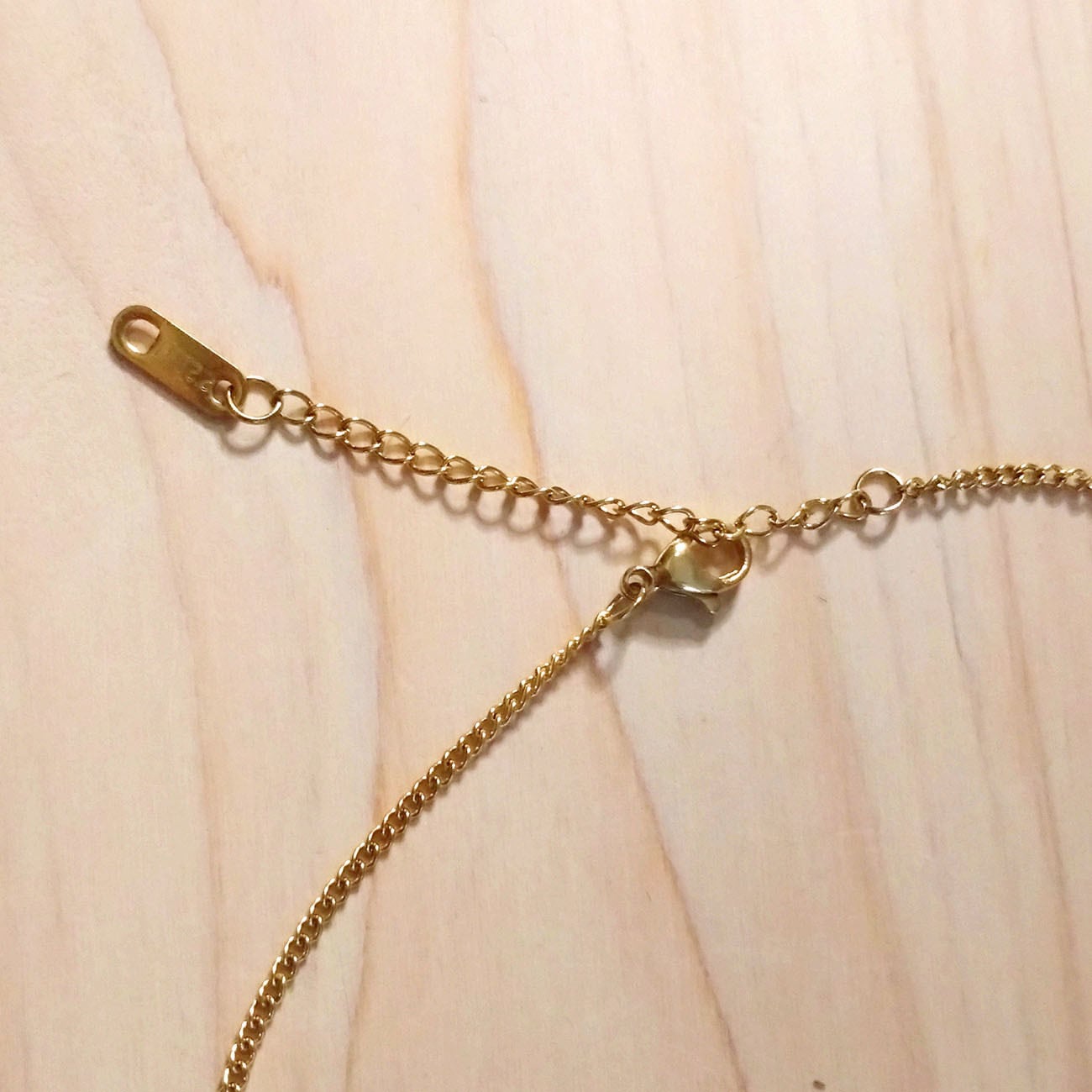 金具はステンレス、チェーンはアレルギーフリーのサージカルステンレスです。