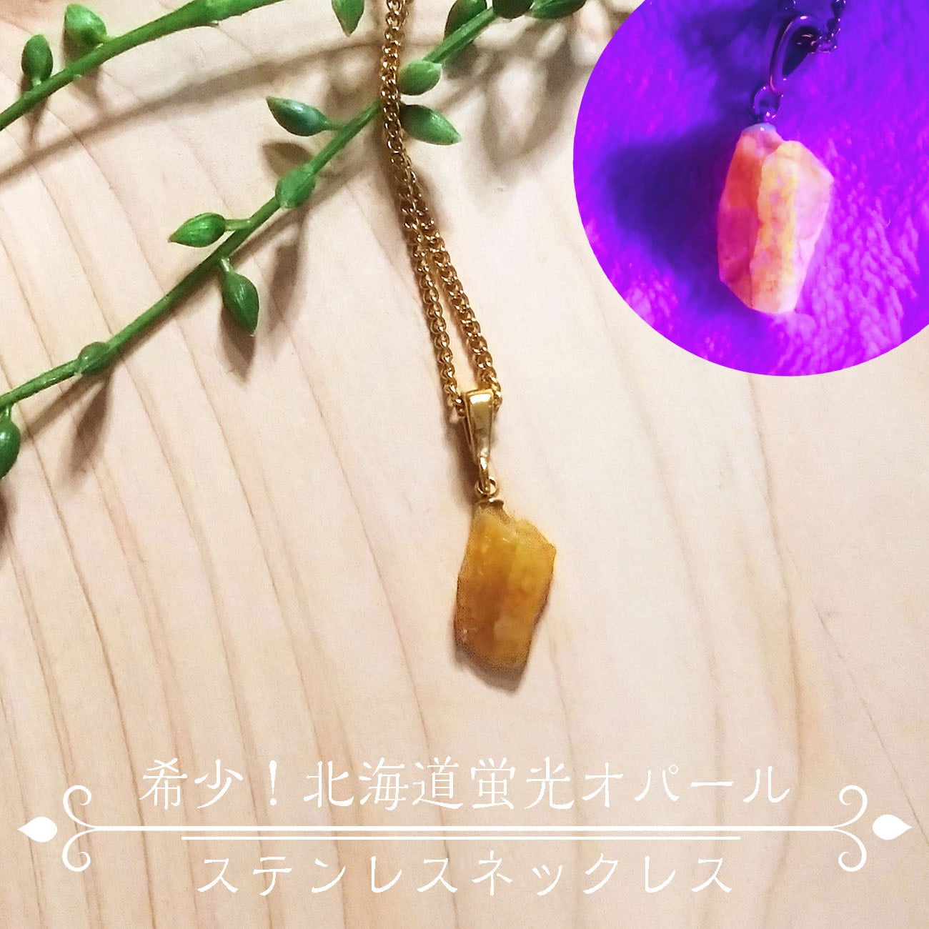 【希少!北海道 蛍光オパールネックレス】ゴールド サージカルステンレスチェーン開運 日本銘石