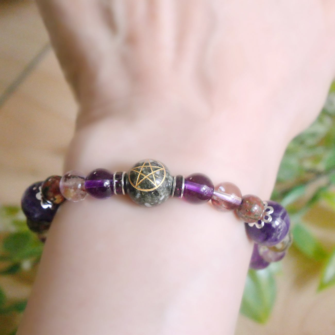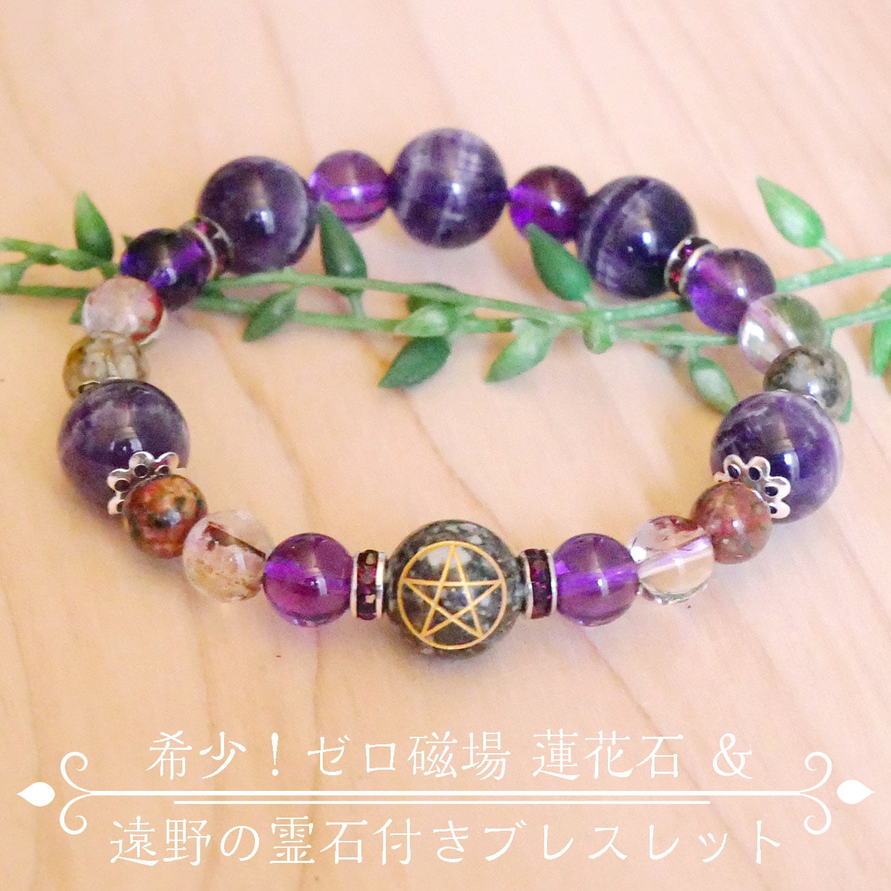 入手困難!中国湖北省の蓮花山産ゼロ磁場の石『蓮花石』と、五芒星入り遠野の霊石付ブレスレットです。