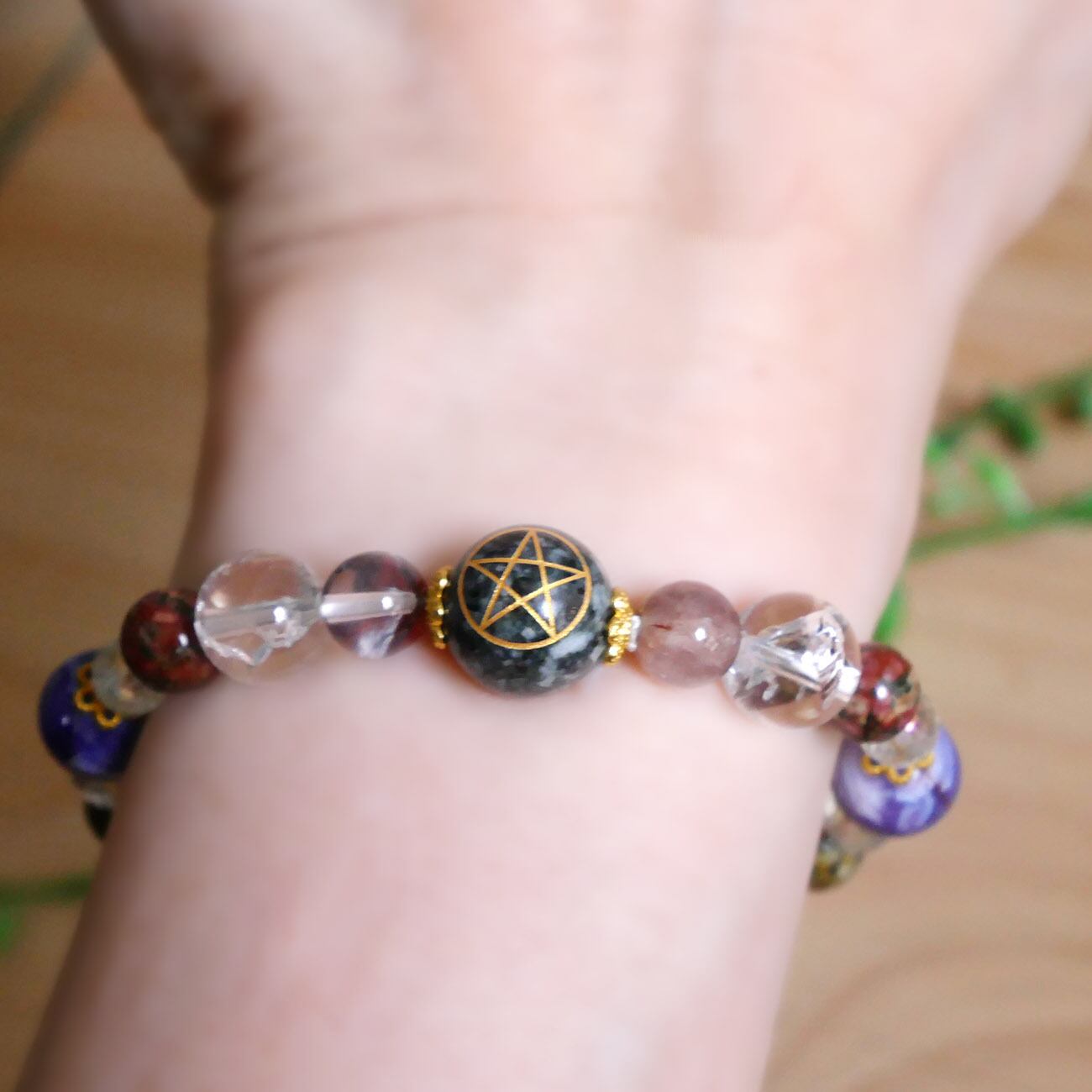 入手困難!中国湖北省の蓮花山産ゼロ磁場の石『蓮花石』と、五芒星入り遠野の霊石付ブレスレットです。