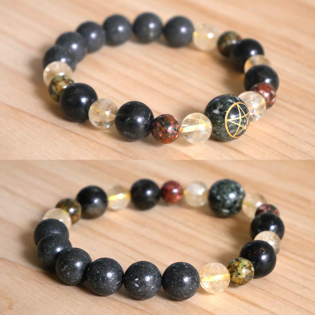 【希少!ゼロ磁場蓮花石&遠野の霊石付ブレスレット】中央構造線黒色片岩・ヌーマイト・シトリン開運 邪気除け
