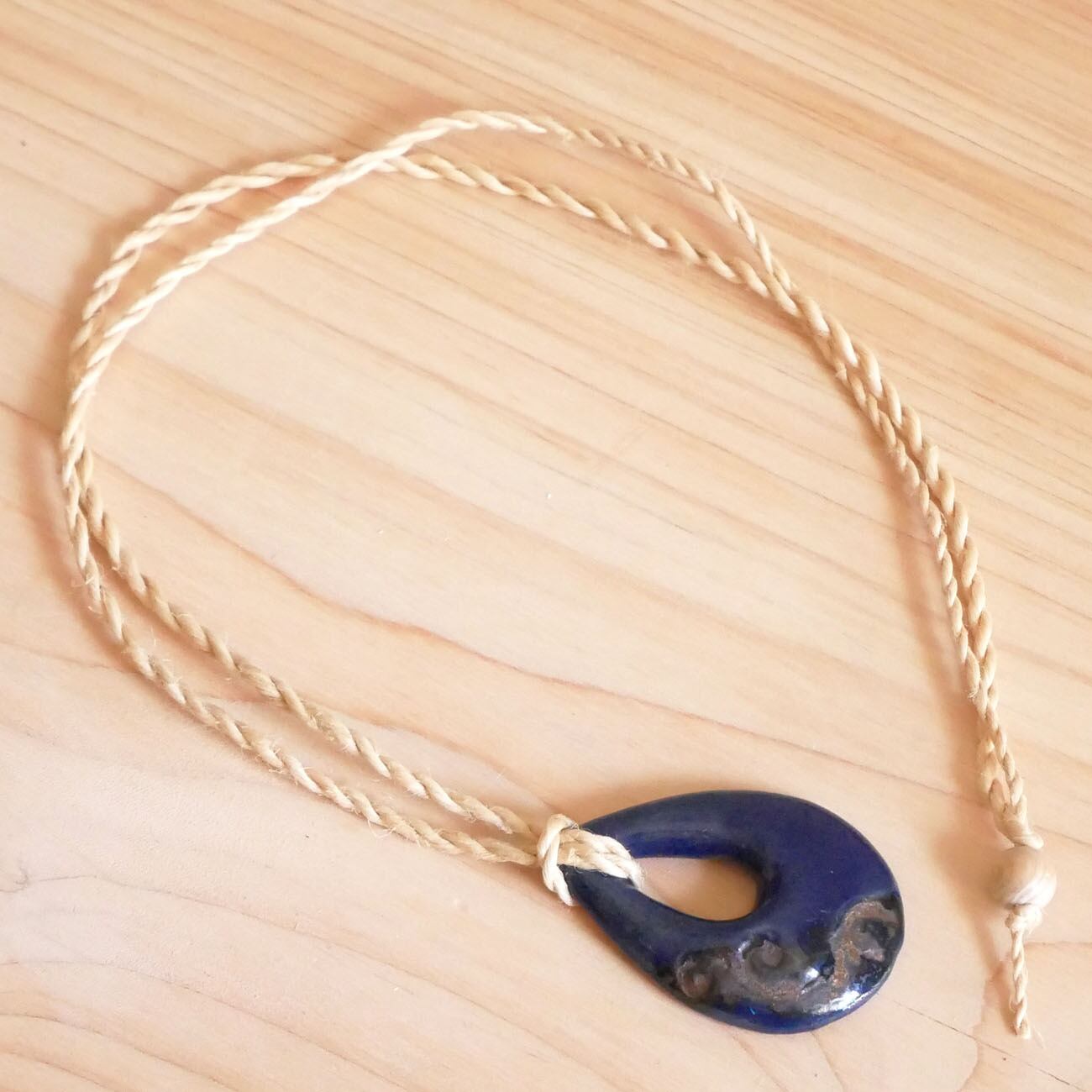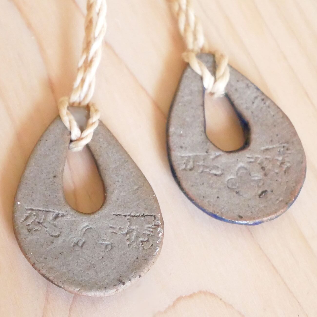 岩手県遠野市の1つの山でしか採れない、遠赤外線放射率と波動値が世界最高レベル!あらゆる物を活性化する、薬石・霊石と言われる日本銘石「遠野の霊石」パウダーを粘土に混ぜて作った陶器チャームの精麻ペンダントです。