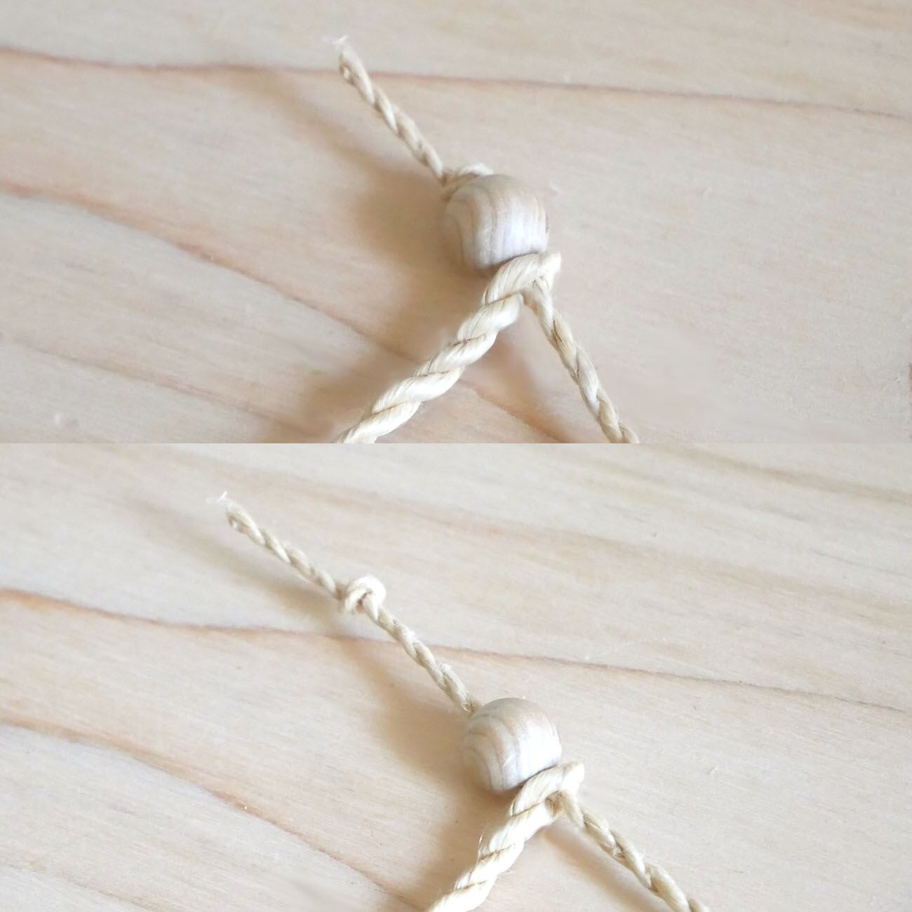 ループエンドにはパワーウッドのホワイトドラゴンアイを使用。スライドして長さ調節も可能です。