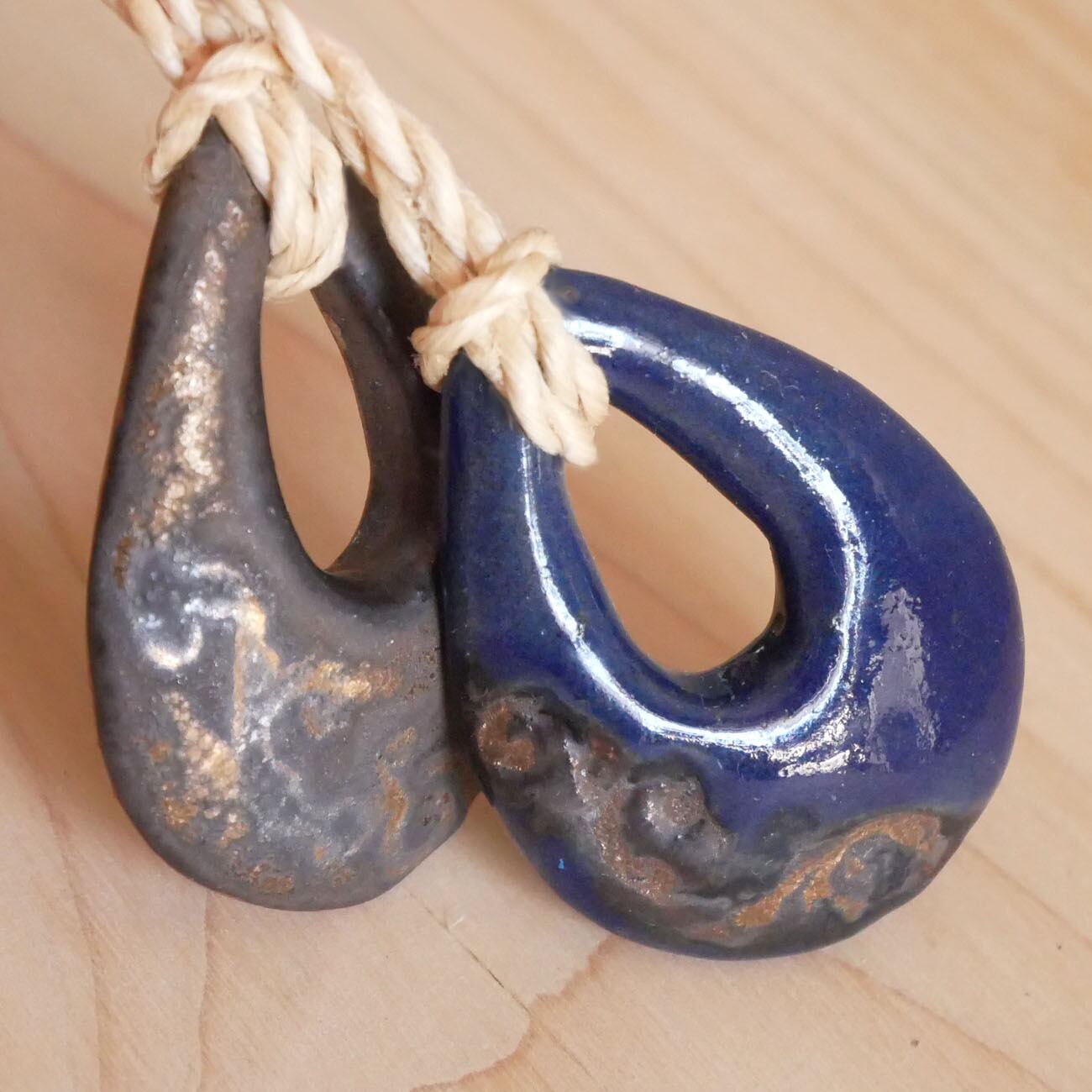 【高波動!雫型遠野の霊石入り陶器精麻ペンダント】開運 アラベスク柄2色 ミニカッサ ツボ押し マイナスイオン&遠赤外線発生