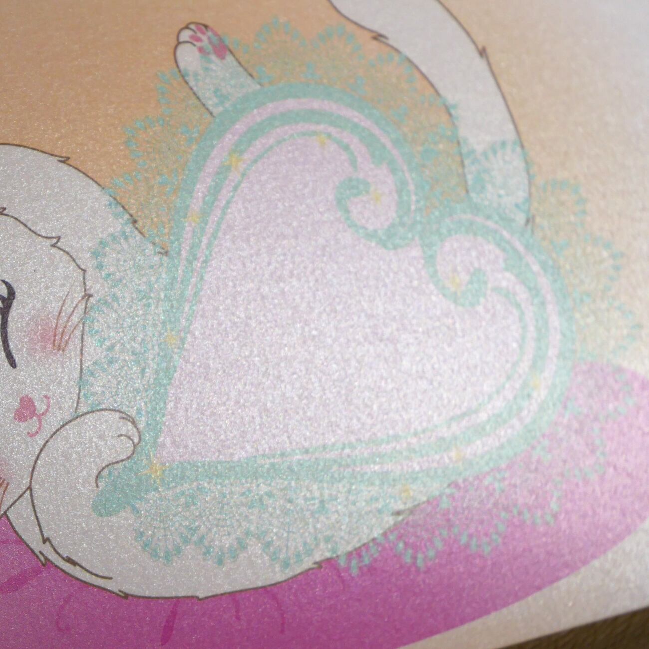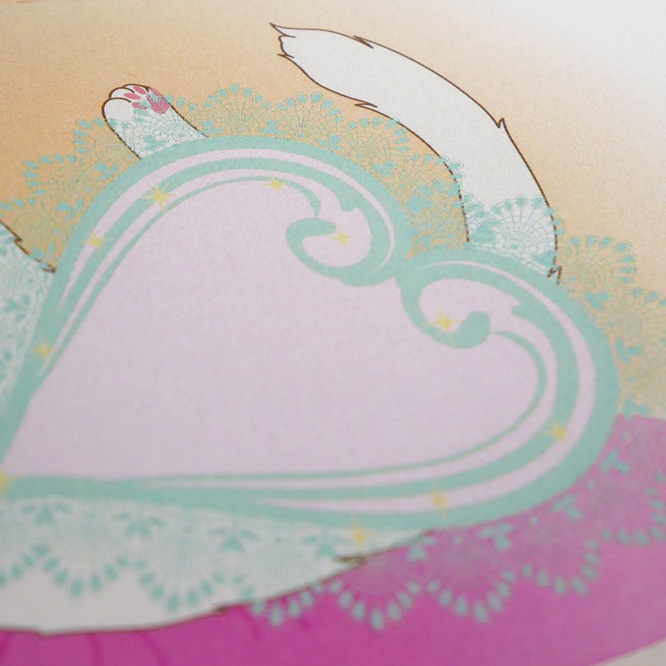 高級パール紙☆ハッピー招き猫レースハート♡メッセージカード3枚セット