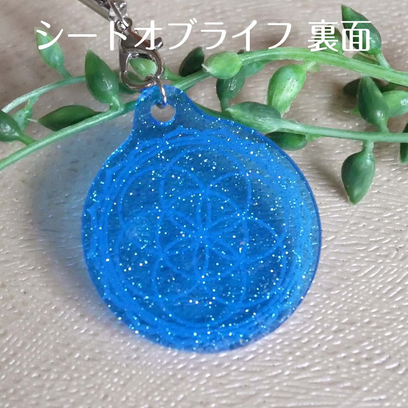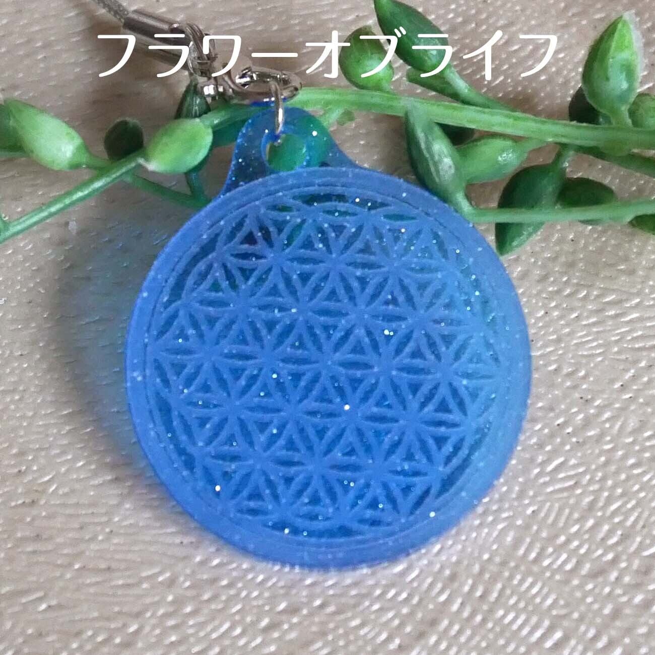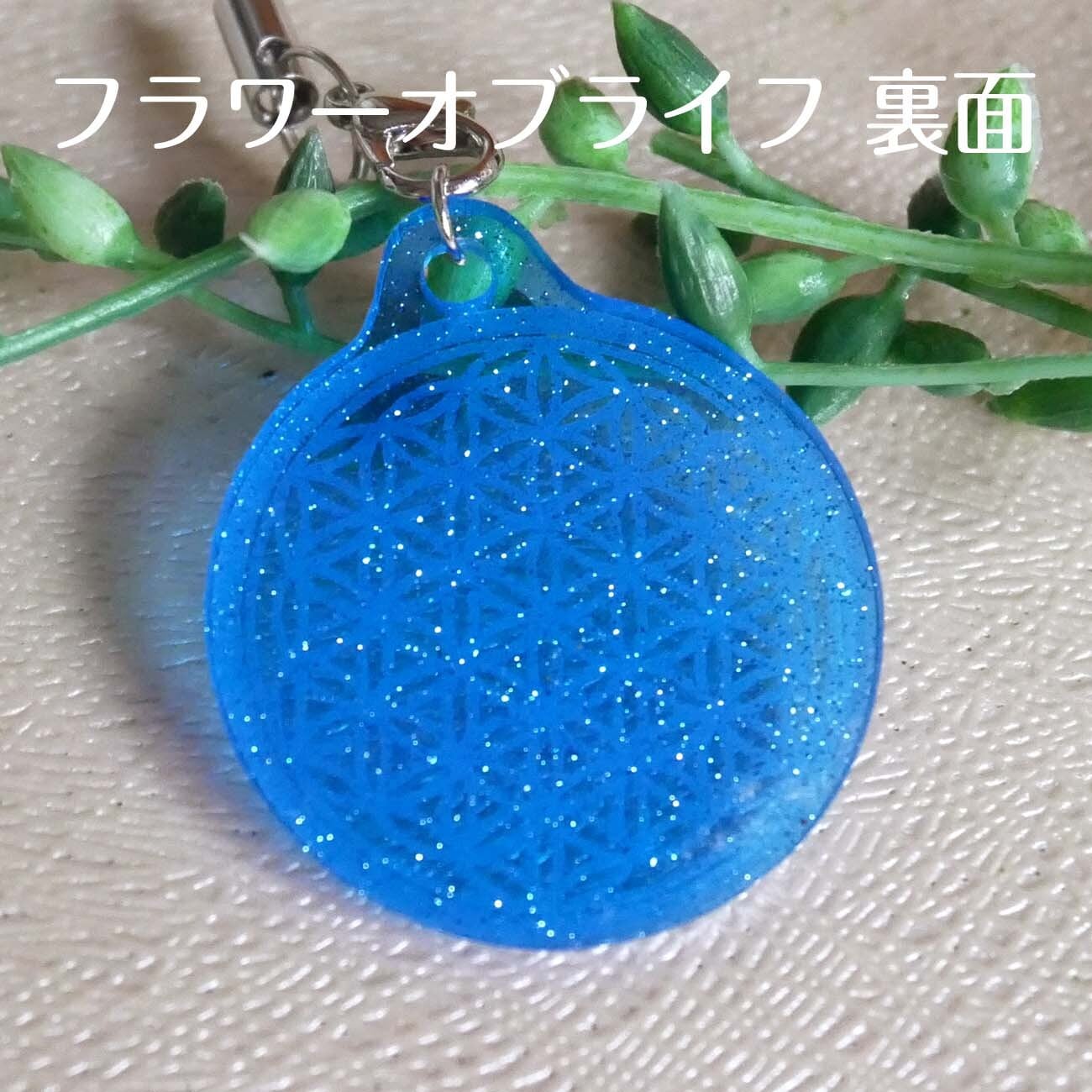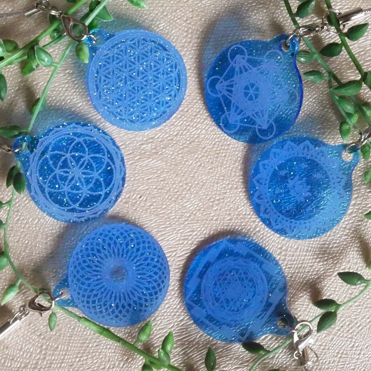 エナジーキーホルダー6種類ラメ入ブルーアクリル製☆神聖幾何学模様ヒーリング浄化