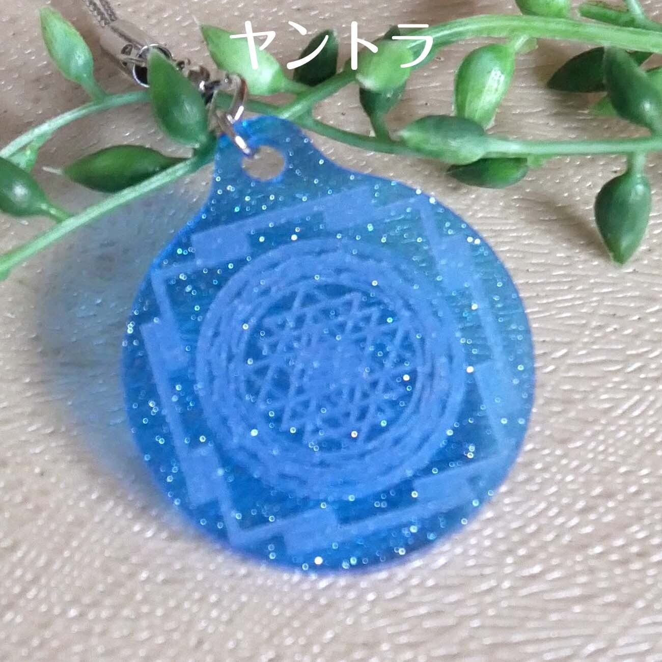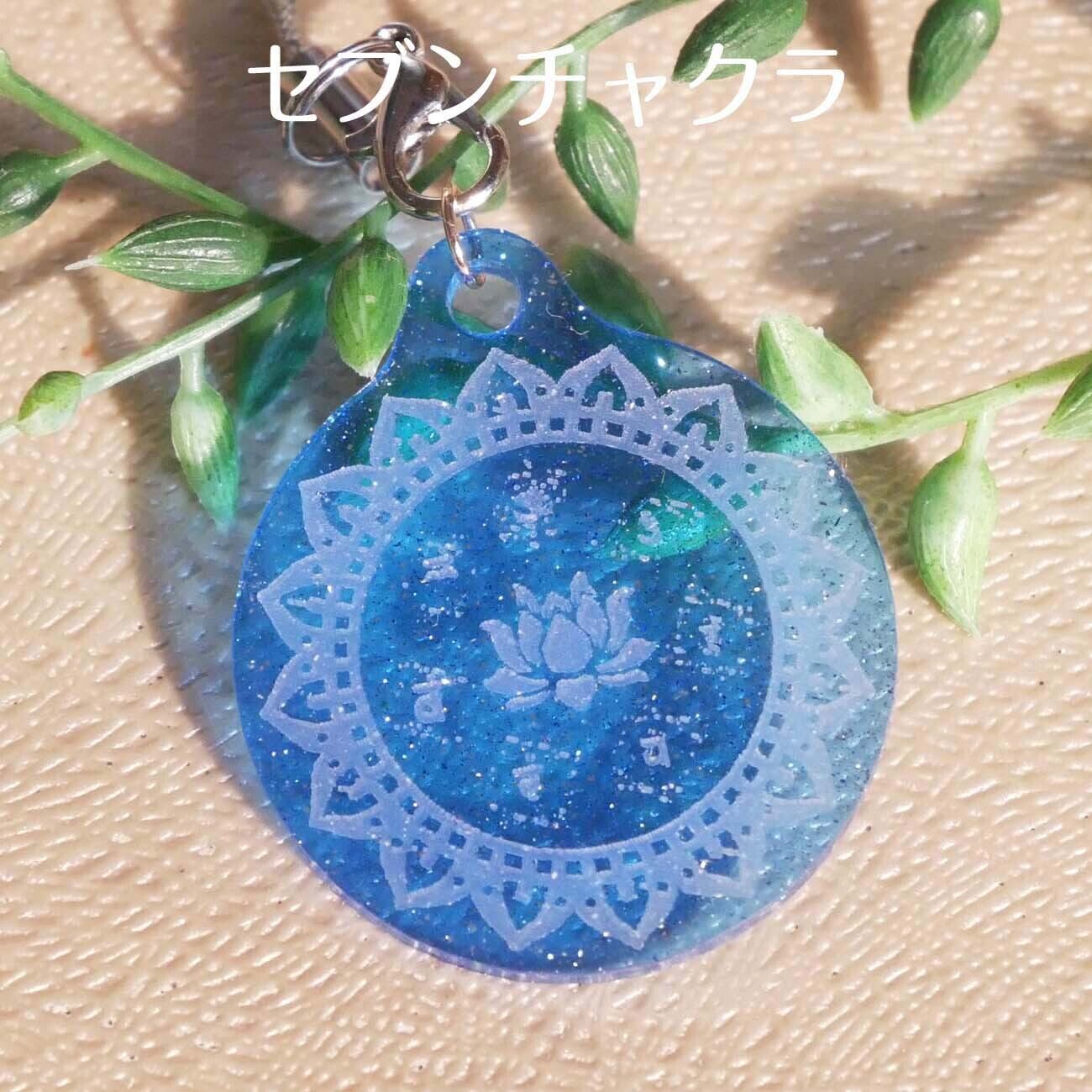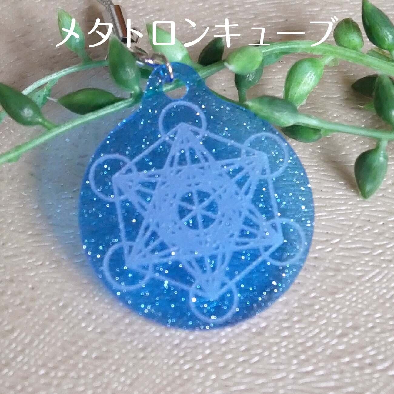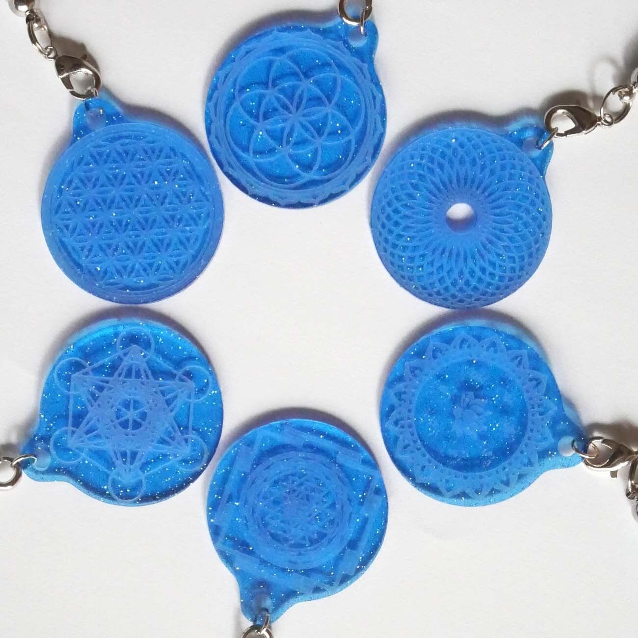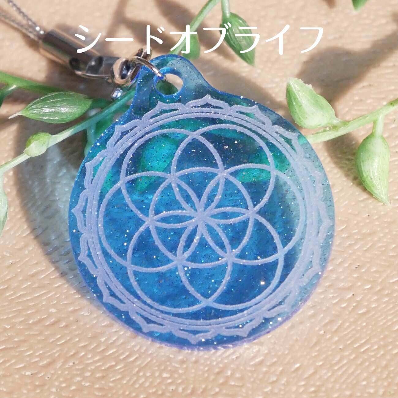 エナジーキーホルダー6種類ラメ入ブルーアクリル製☆神聖幾何学模様ヒーリング浄化
