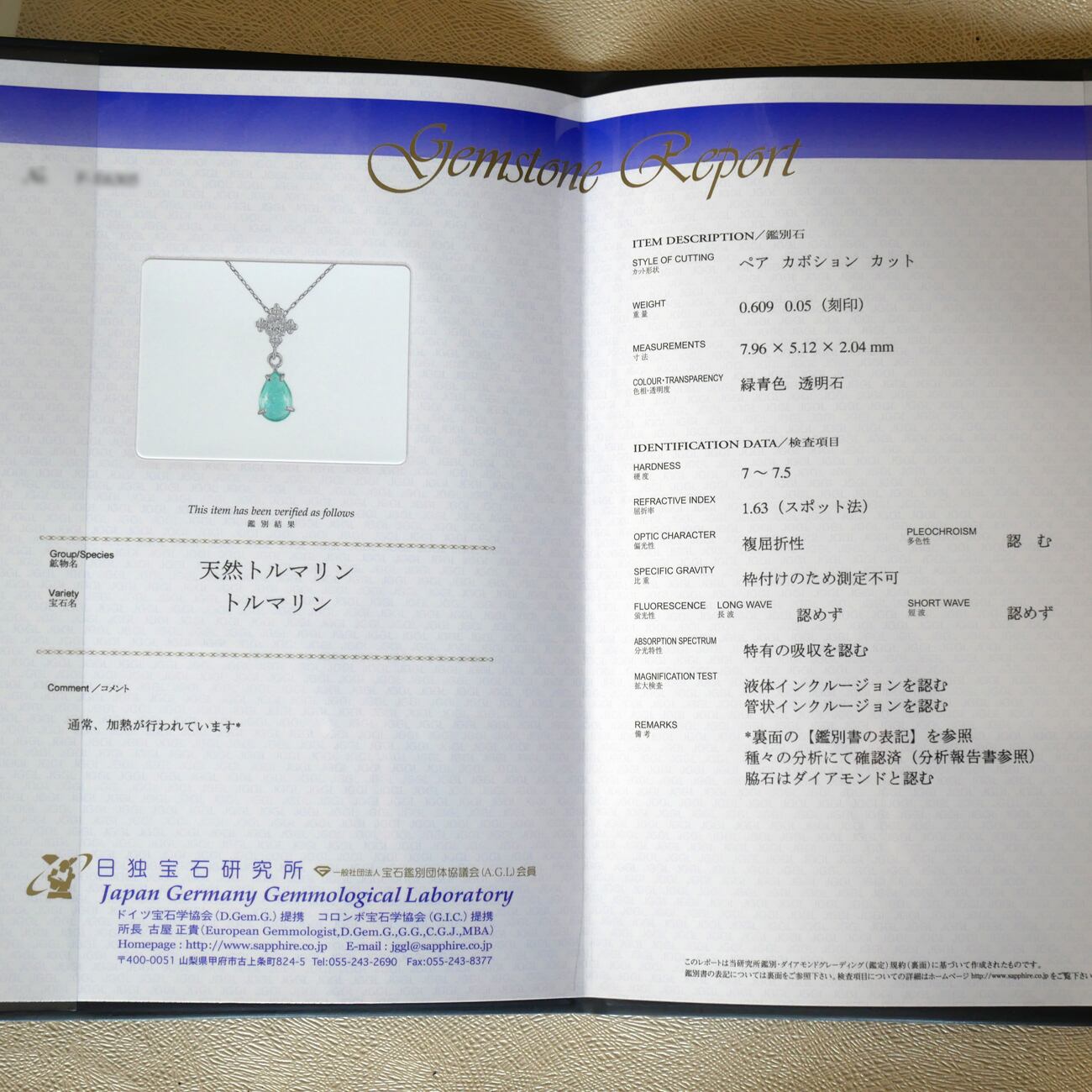 鑑定書・クリアケース付き。